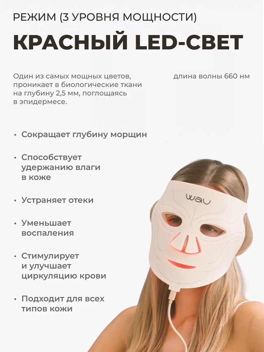 LED маска WAU 2-го поколения светодиодная для фототерапии лица информация: