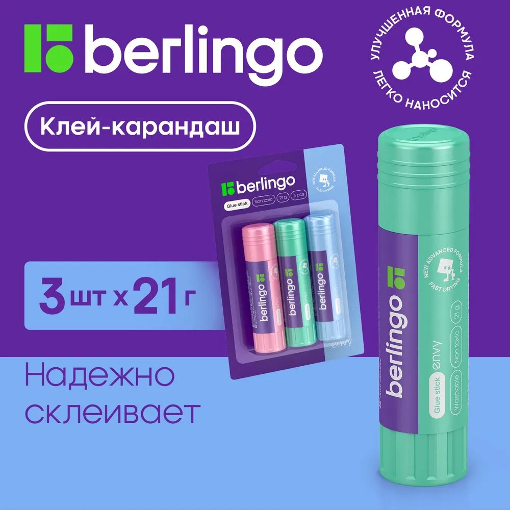 10 цен на Клей-карандаш Berlingo "Envy", 21г, 3шт в блистере с европодвесом, ПВП