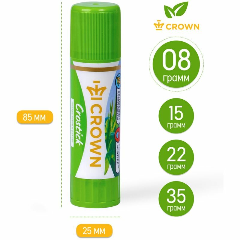 Клей-карандаш Crown "Expert", 8 гр, 85 x 25 см, белый, на водной основе информация: