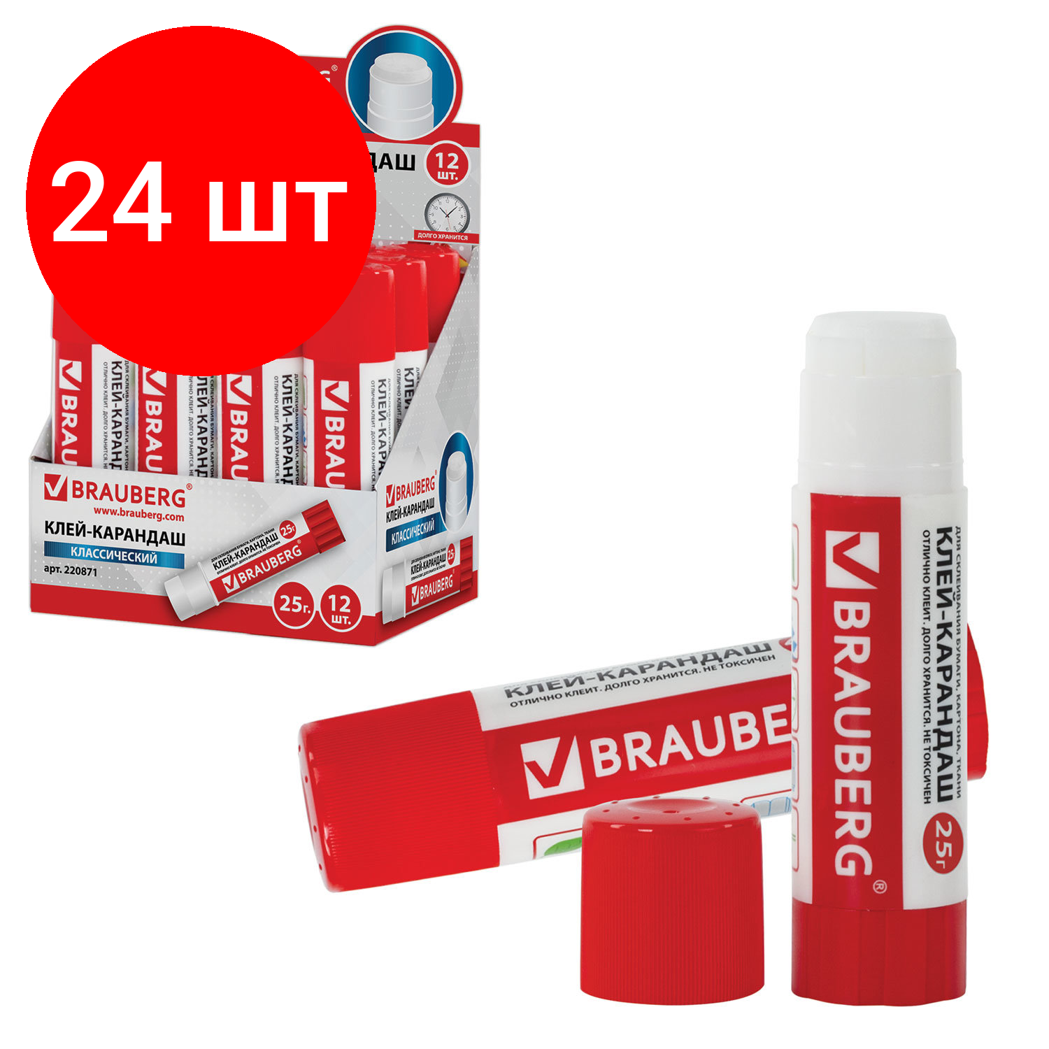 Комплект 24 шт, Клей-карандаш BRAUBERG, 25 г, 220871 информация: