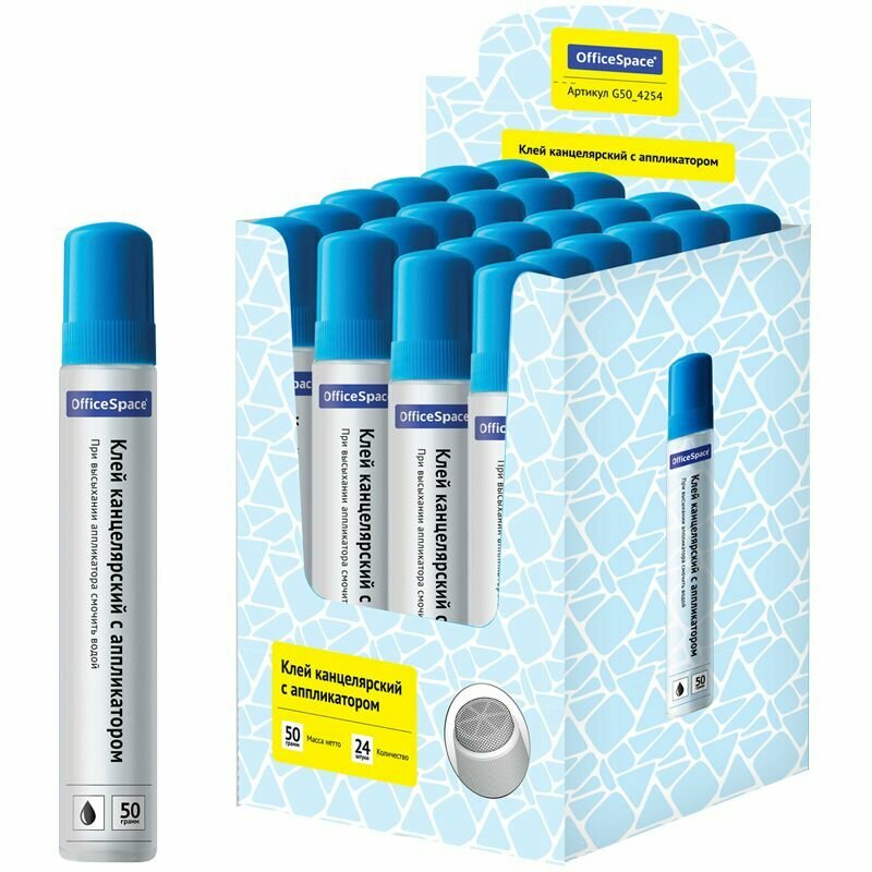 Клей канцелярский OfficeSpace, с аппликатором, 50 грамм, прозрачный информация: