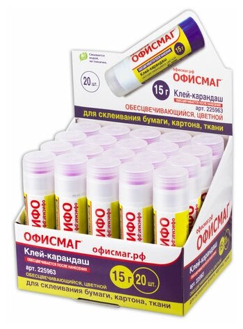 Клей-карандаш офисмаг 15 г, обесцвечивающийся после высыхания, 225963 информация: