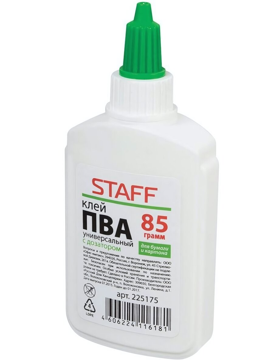 Клей ПВА 85 г. с дозатором "Everyday" (STAFF) информация: