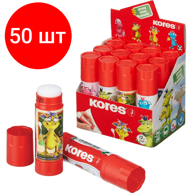 Комплект 50 штук, Клей-карандаш школьный 15г KORES GluKIDS 13502 информация: