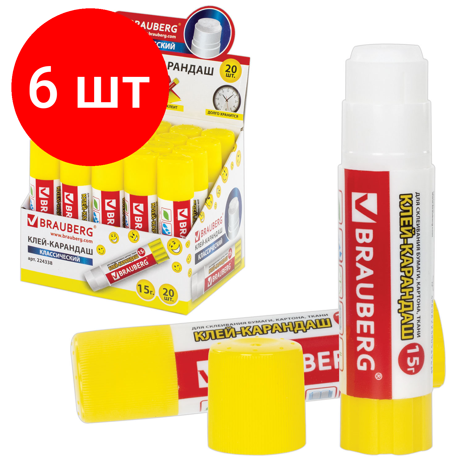 Комплект 6 шт, Клей-карандаш BRAUBERG "Смайлики", 15 г, 224338 информация: