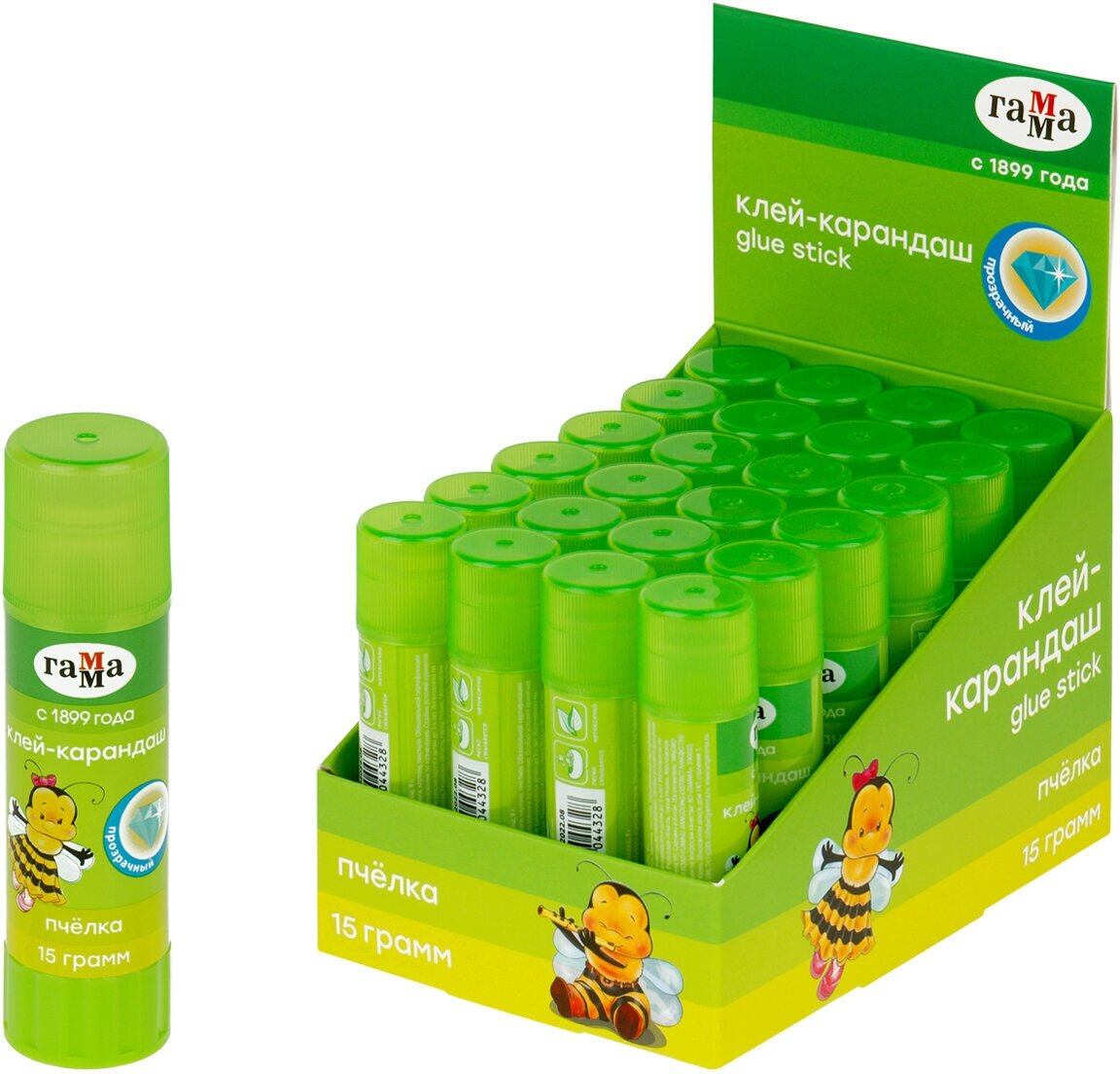 Клей-карандаш Гамма "Пчелка", 15г, прозрачный, ПВП, 20 штук информация: