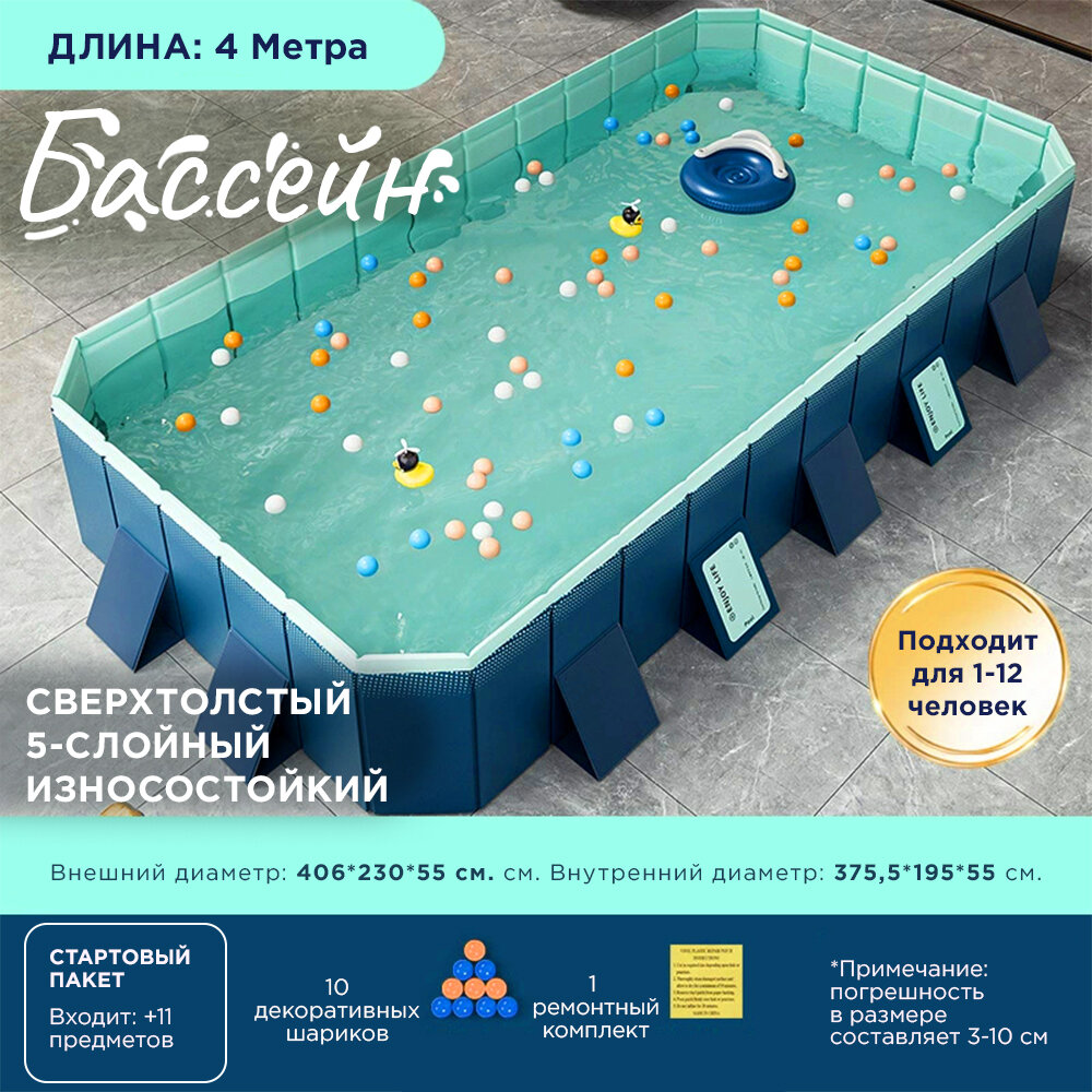 Складной детский плавательный бассейн домашний, 4 м, темно-синий стандарт информация: