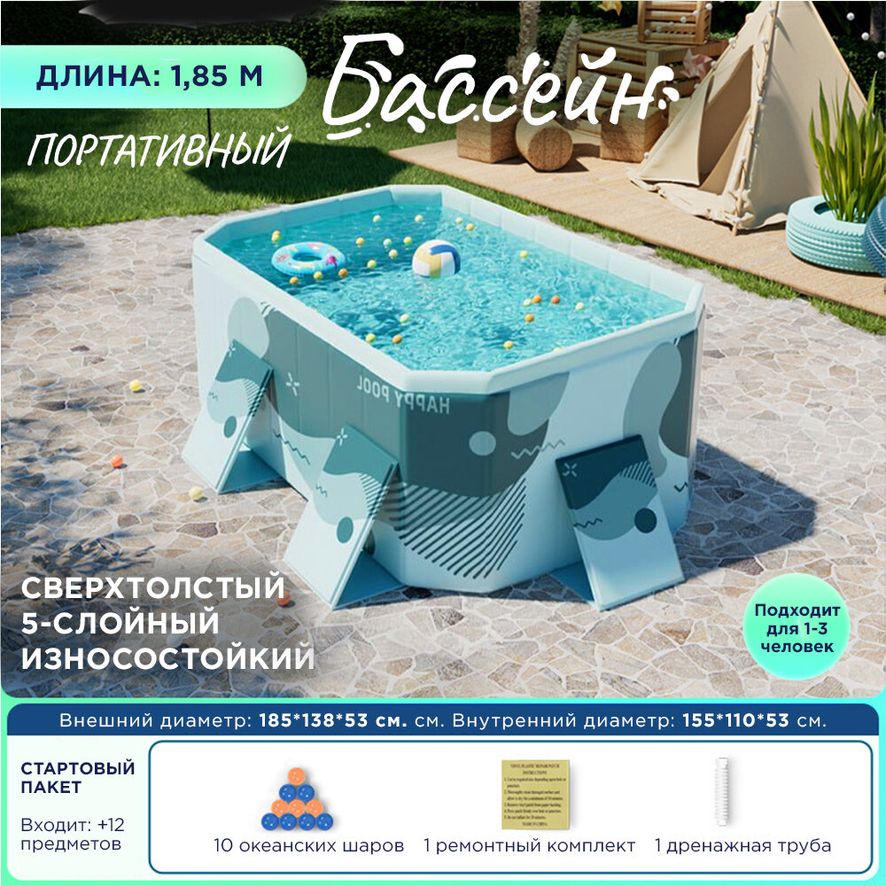 Характиристики этого товара не найдены!Отзывы на Складной детский плавательный бассейн домашний, 1.85 м, мятно-голубой стандартная комплектация