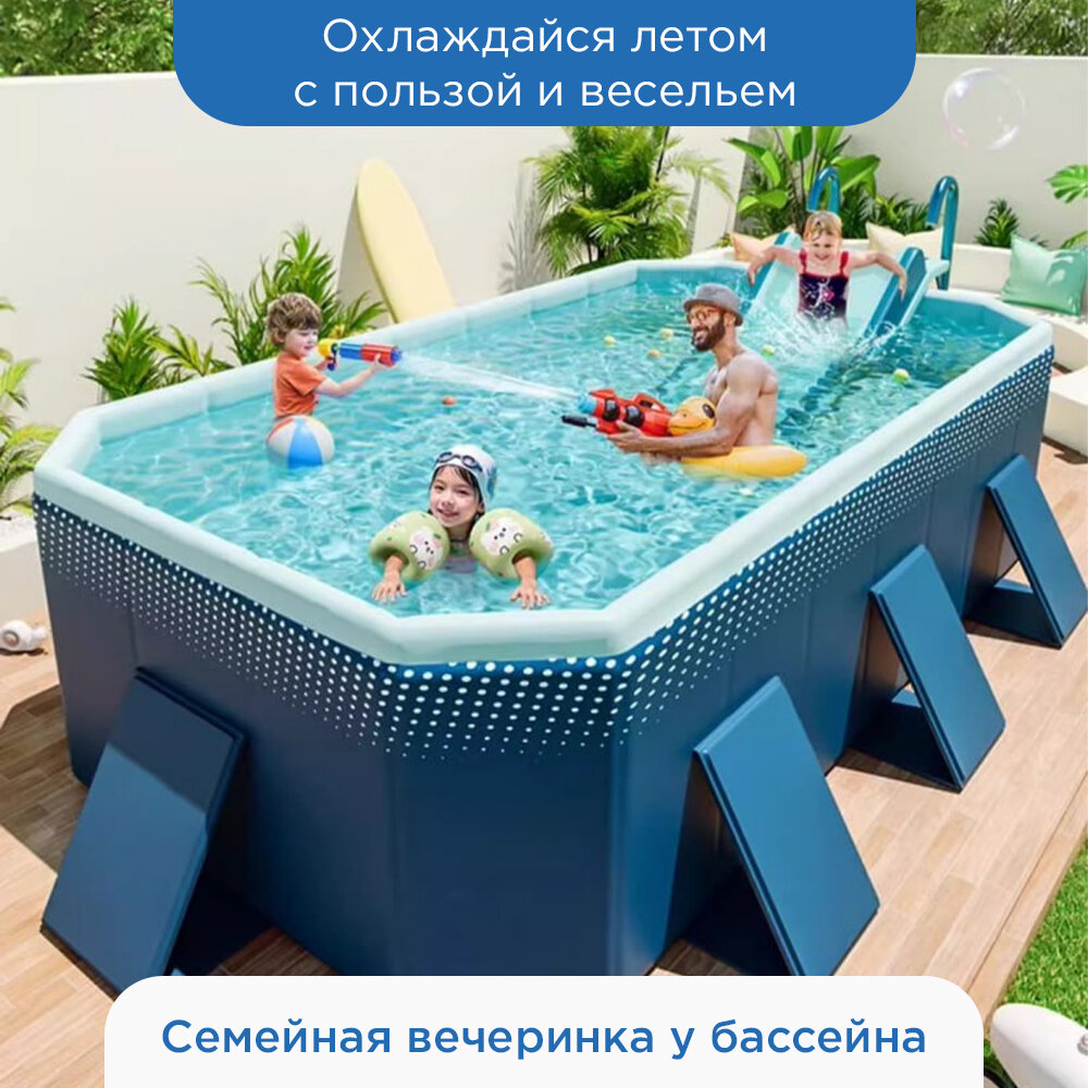 Складной детский плавательный бассейн домашний, 3 м, титановая алюминиевая опорная сталь стандарт + горка 14 227 ₽
