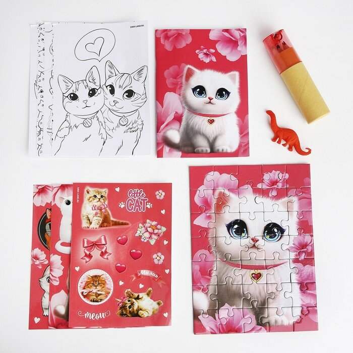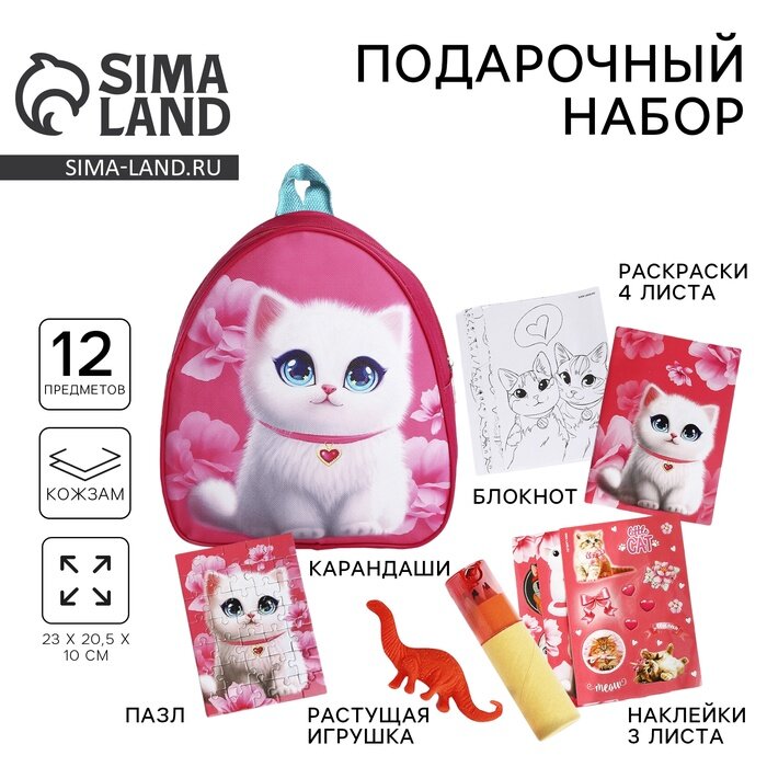 10 цен на Подарочный набор в рюкзаке «Котик», блокнот, раскраска, карандаши, пазлы, наклейки