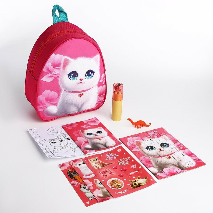 Подарочный набор в рюкзаке «Котик», блокнот, раскраска, карандаши, пазлы, наклейки информация:
