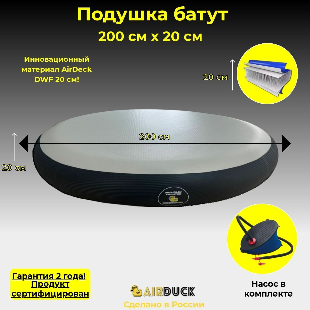 Надувной батут круг из AirDeck 2 метра. Высота 20 см информация: