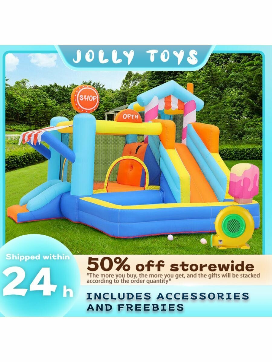 10 цен на Большой детский надувной батут-замок (с феном)