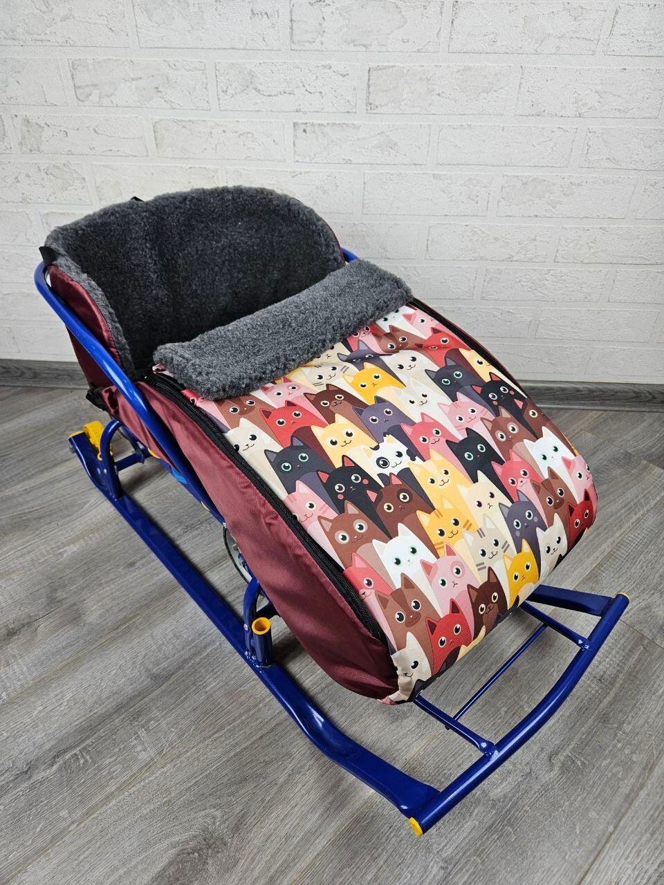 Отзывы на Матрасик для санок меховой 3 в 1 Коты коричневый бок бордовый мех серый