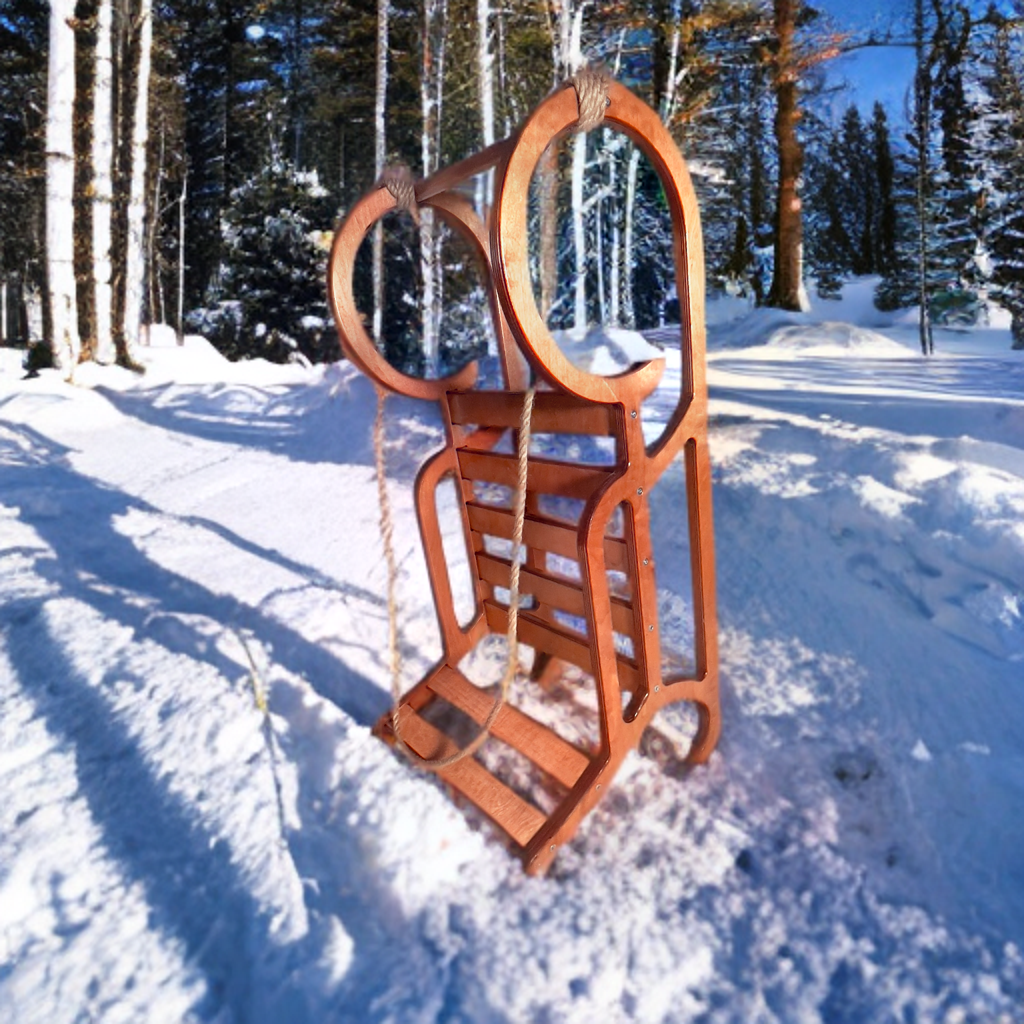 Финские сани для детей и взрослых с накладками на полозья для катания по снегу, цвет коричневый (оттенок палисандр), 175х56х86 см