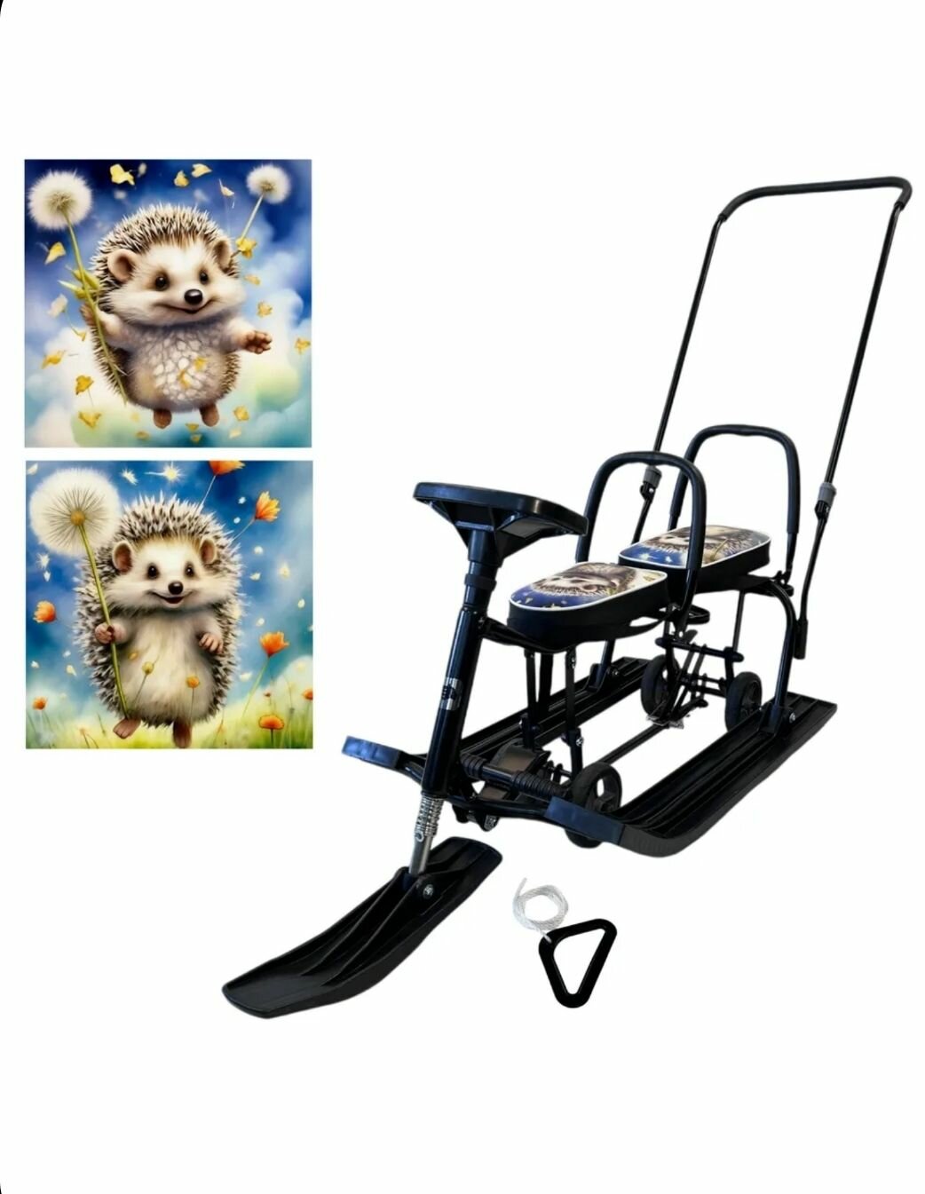 Снегокат детский "барс" 507 "TWINS BABY Wheel" разборный для двоих детей с двумя складными спинками, складным толкателем и колесной базой Ёжики информация: