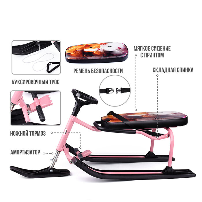 Характиристики этого товара не найдены!Отзывы на Снегокат детский 501 "TANDEM" разборный для двоих со складной спинкой (Пушистики)