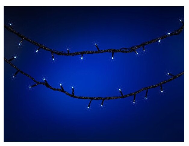 Электрогирлянда новогодняя, наружная, гидроизоляция, 180 лампочек, черный провод, синий, 9 м + 10 м (ЕК0243)