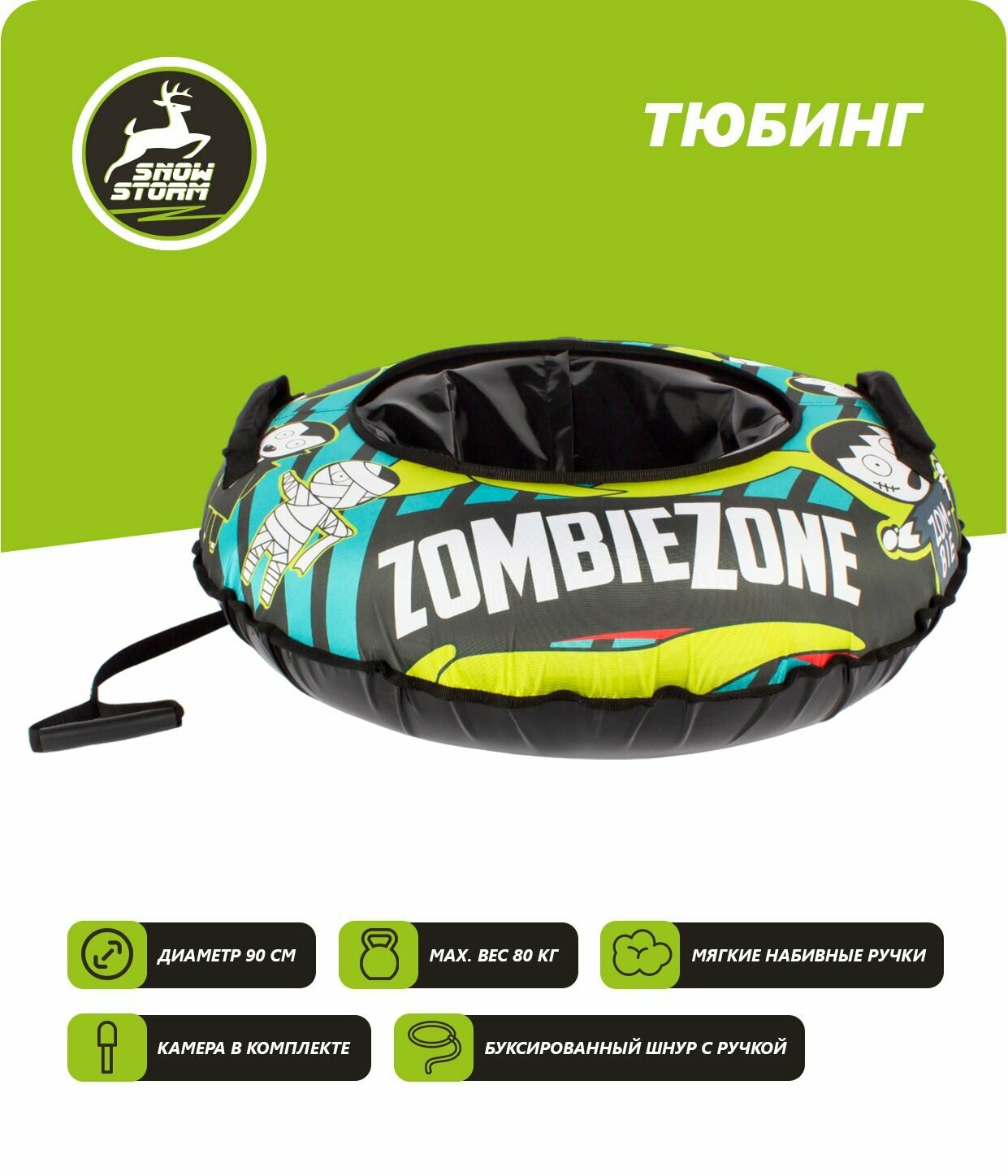 Тюбинг - ватрушка Snowstorm модель BZ-90_ZOMBIEZONE, 90 см, зеленый с черным информация: