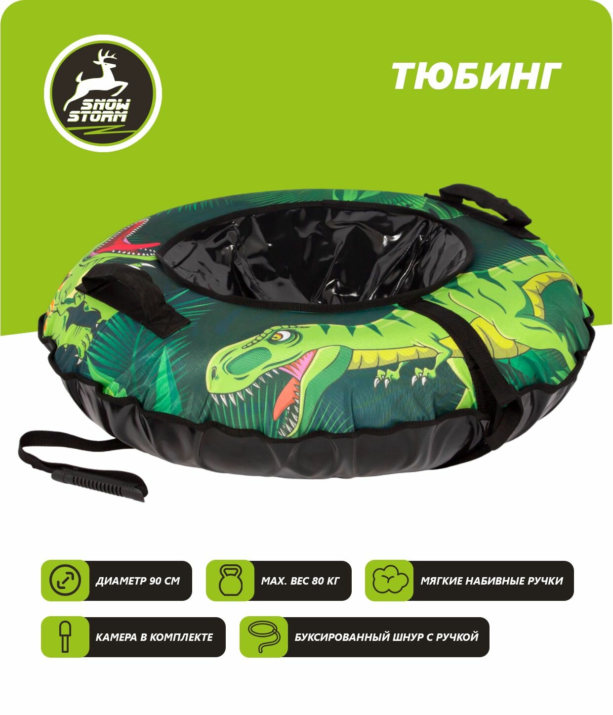 Тюбинг - ватрушка Snowstorm модель BZ-90_DINOSAURS, 90 см, зеленый с черным информация: