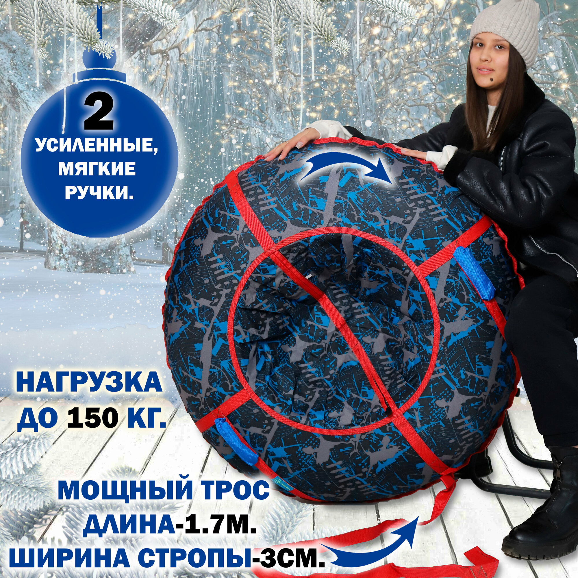 Характиристики этого товара не найдены!Отзывы на Ватрушка тюбинг 110 см с ручками и буксировочным тросом GAOKSA / Гаокса, санки детские для катания с горок трек синий