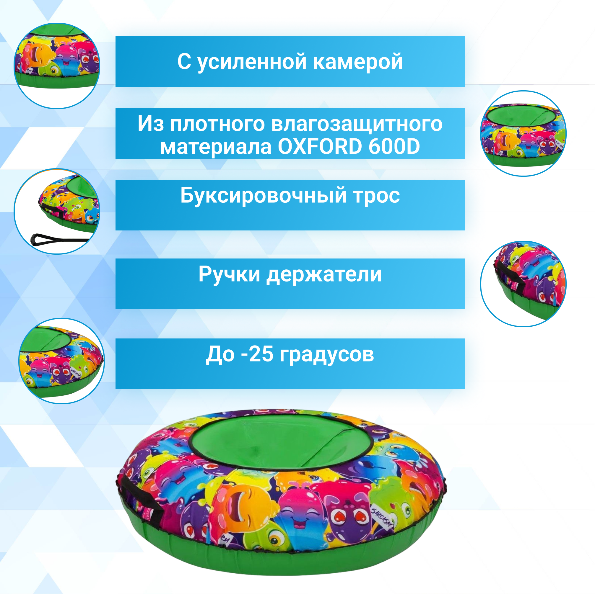 Тюбинг- ватрушка ТяниТолкай 100 см Oxford с камерой SLIME информация: