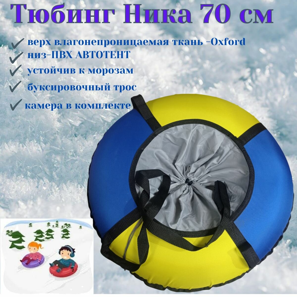 Тюбинг ватрушка Ника 70 см синий-желтый с камерой информация: