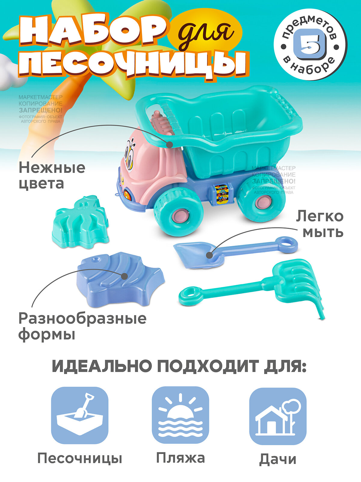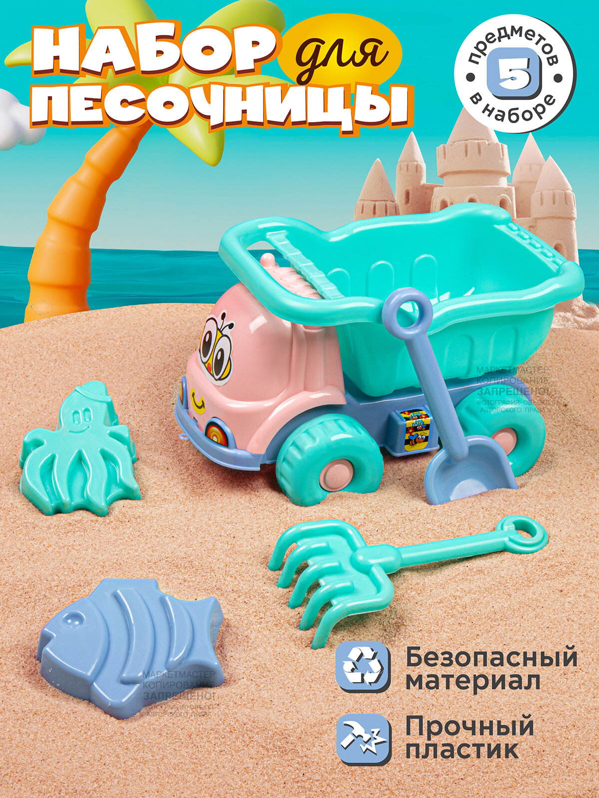 Набор для песочницы с грузовиком, лопатка, грабли, формочки, JB5300673 510 ₽
