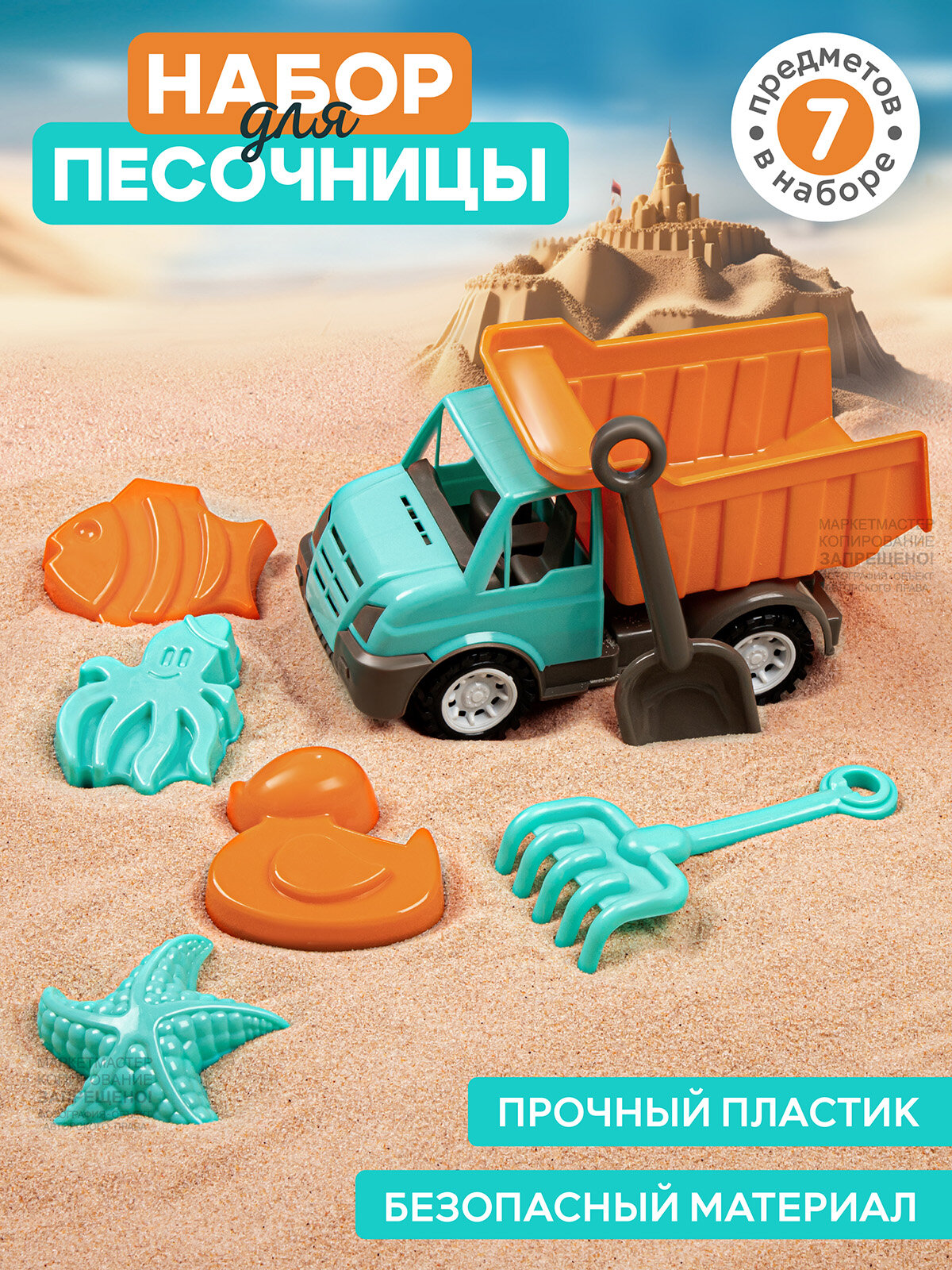 Набор для песочницы с грузовиком, лопатка, грабли, формочки, JB5300672 510 ₽