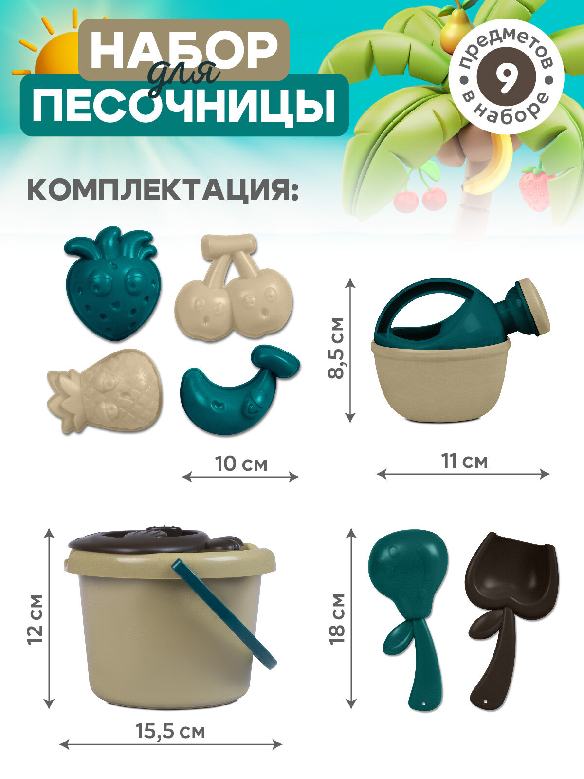 10 цен на Песочный набор "Фрукты", ведёрко, сито, леечка, лопатка, грабли и 4 формочки, JB5300920