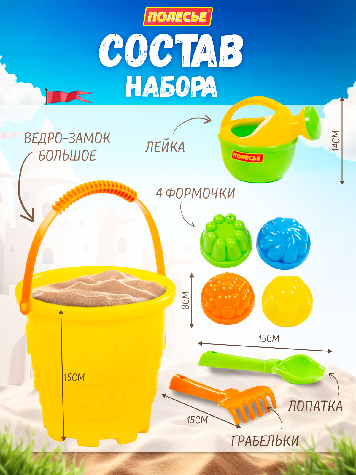 Набор игрушек для песочницы Полесье (ведро, лейка, совок, формочки) информация: