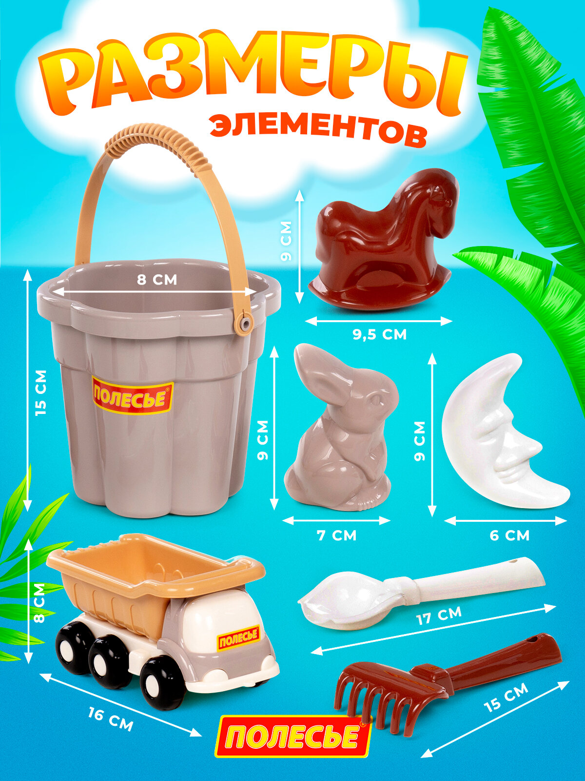 Набор для песочницы с бежевым ведром-цветком и машинкой, 7 предметов, пластик, от 1 года Полесье информация: