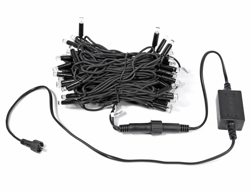 Уличная гирлянда 24V Laitcom Legoled 72 теплых белых LED лампы, 10 м, черный каучук, соединяемая, IP54, Laitcom LL75-1-1WW