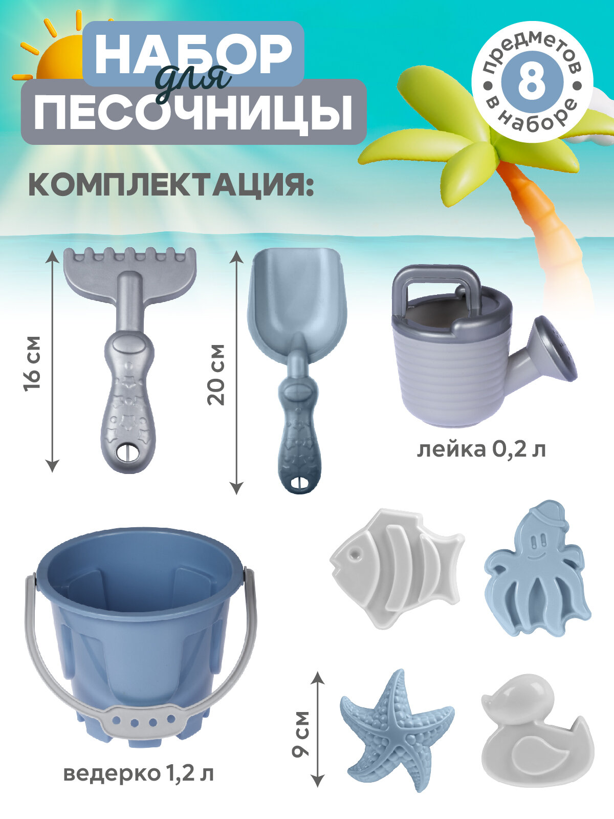 Песочный набор, ведерко, лопатка/грабельки, лейка, формочки, JB5300543 510 ₽