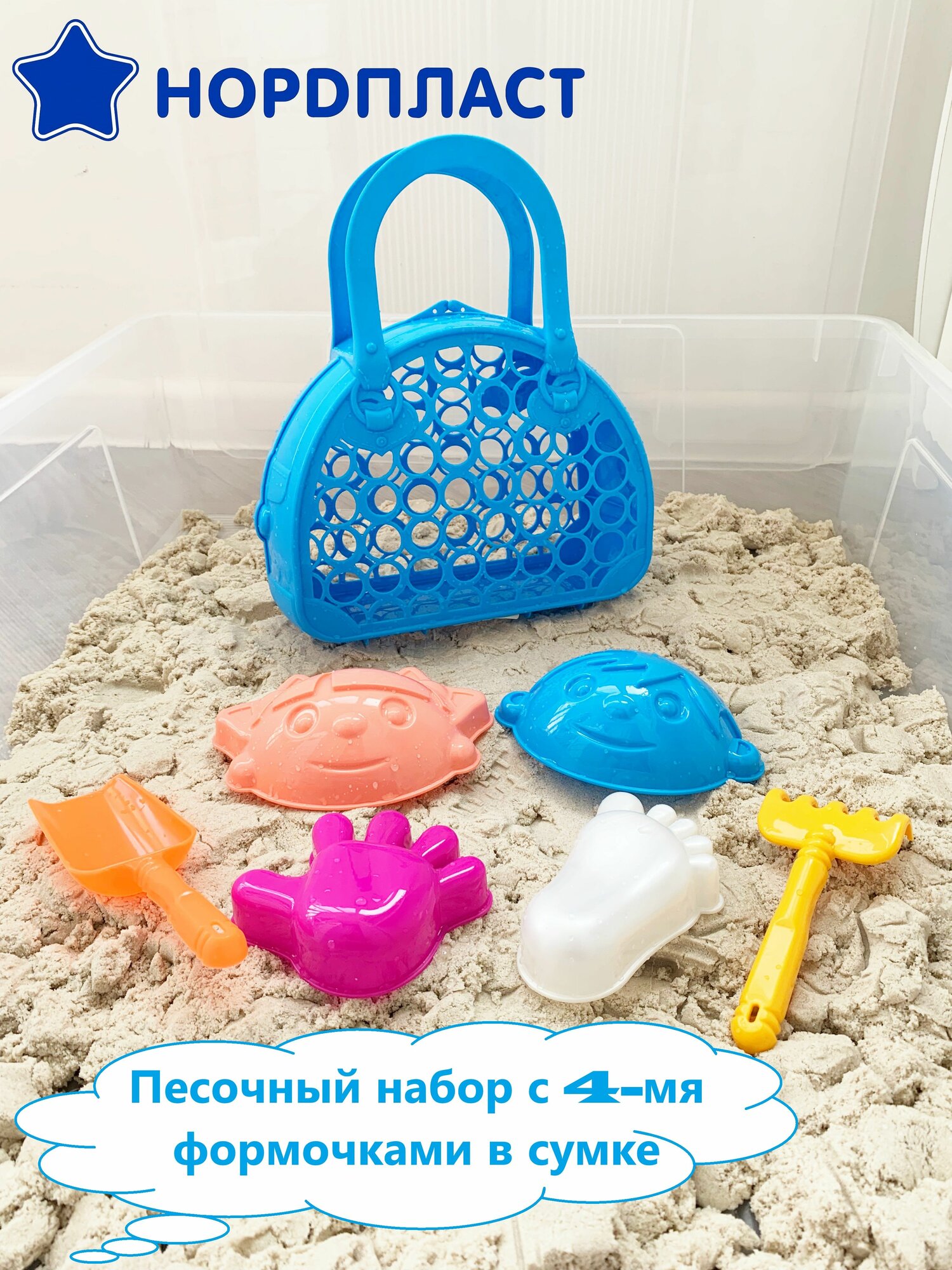 10 цен на Песочный набор в сумочке: совок, грабли, 4 формочки человечки / Нордпласт