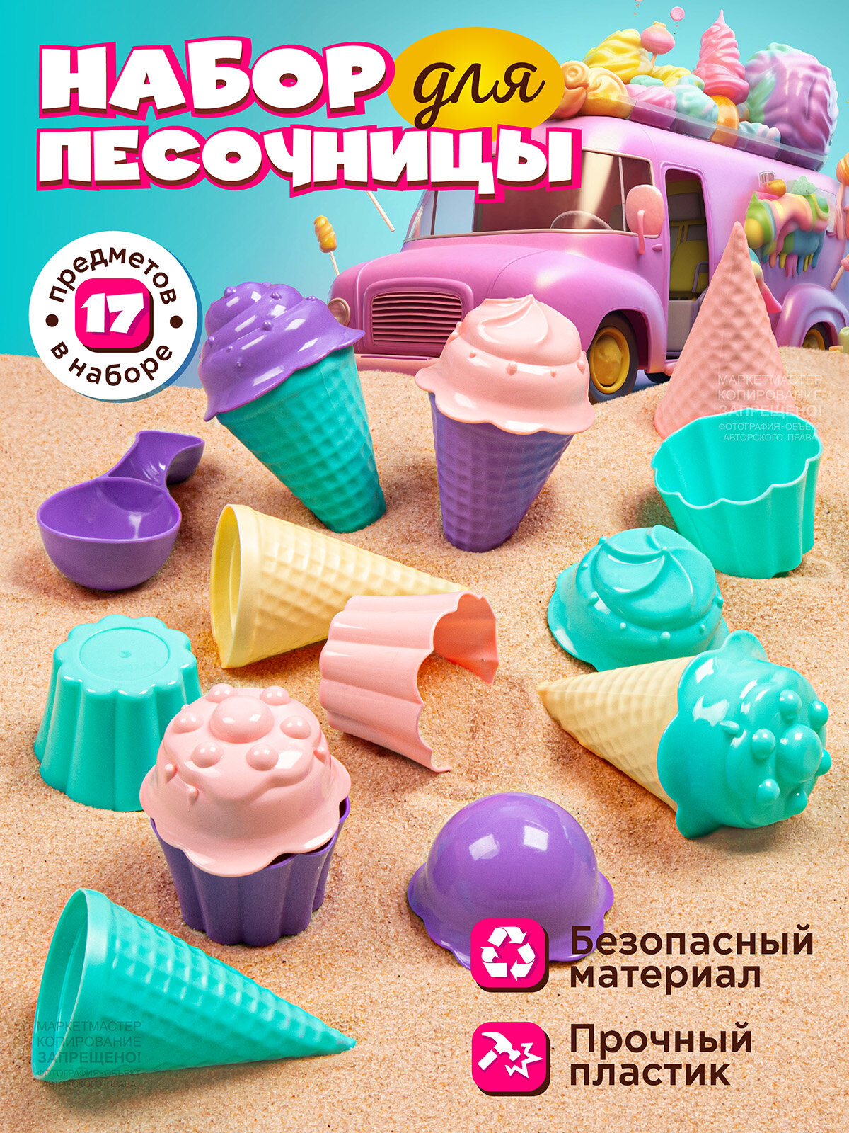10 цен на Песочный набор Мороженое, набор кондитера, маффины, формочки, для игры в песочнице, JB5300644
