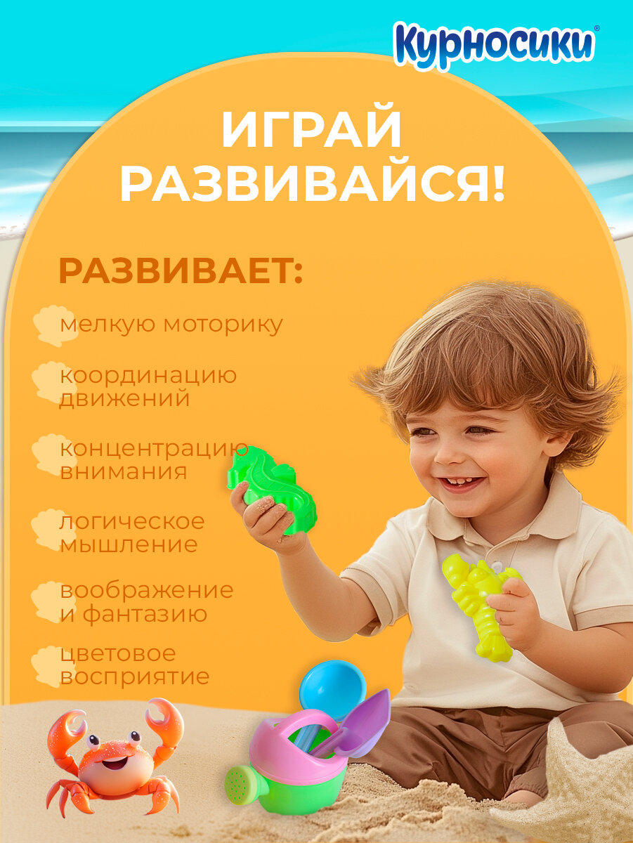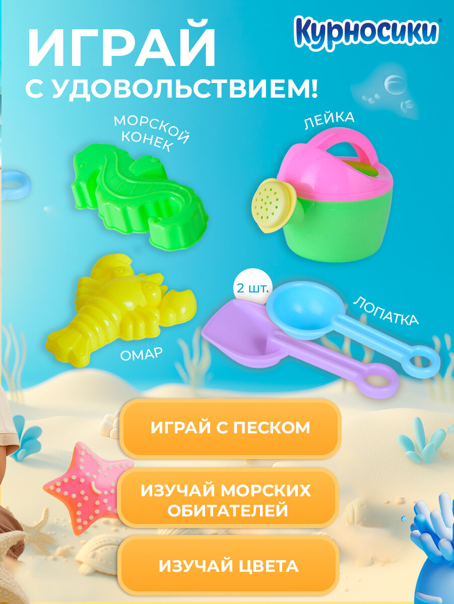 Характиристики этого товара не найдены!Отзывы на Детский игровой набор для песочницы Курносики "Садовый" лейка-сердце, лопатка 2 шт и формочка для песка 2 шт, с 3 лет