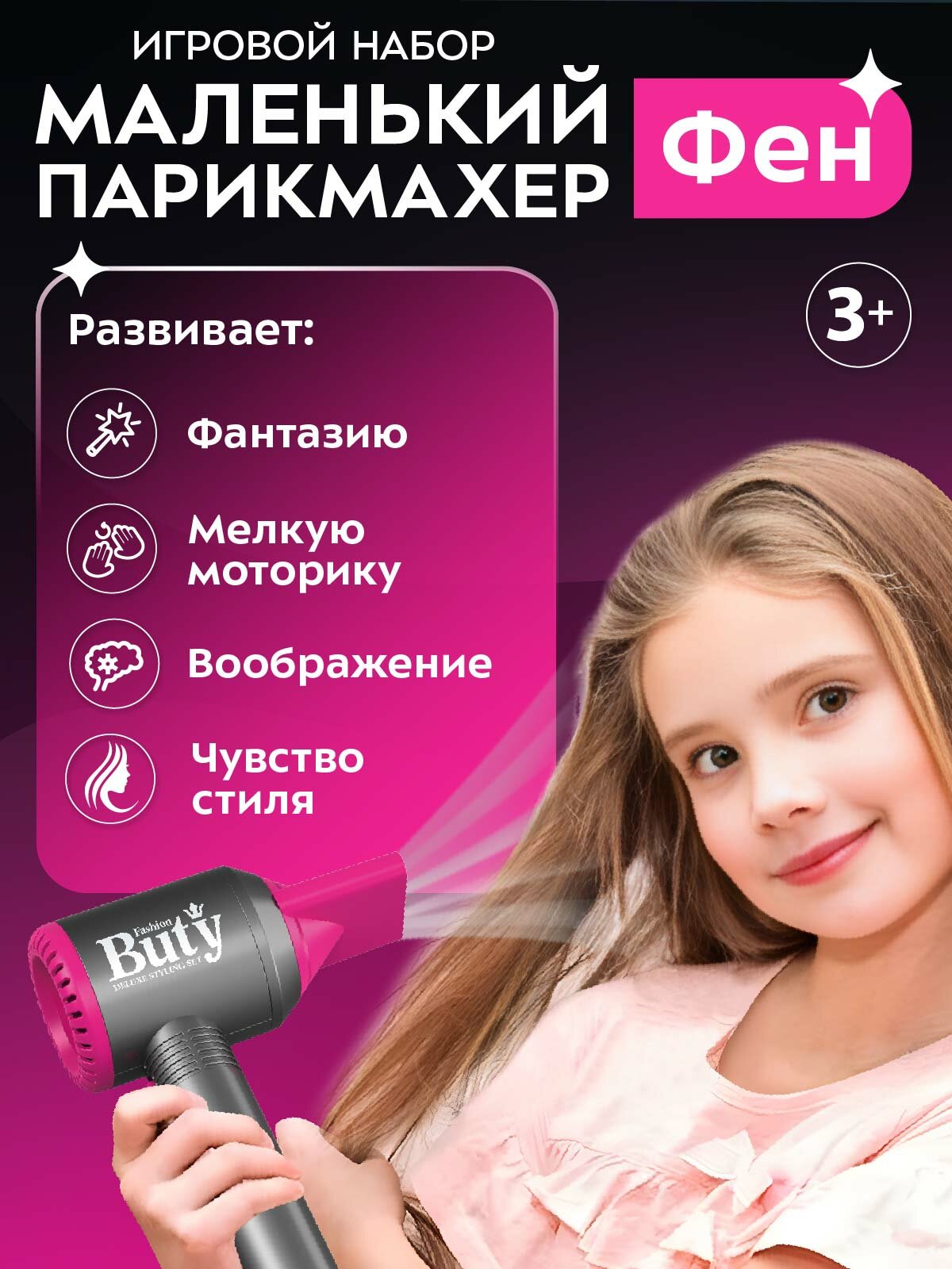10 цен на Фен детский игровой, стилист, парикмахер, моделируем прически, JB0213088