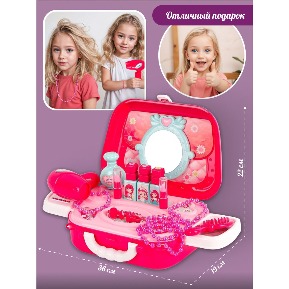 Детский набор парикмахера салон красоты Модница с игрушечной косметикой и феном в чемодане, 17 предметов информация: