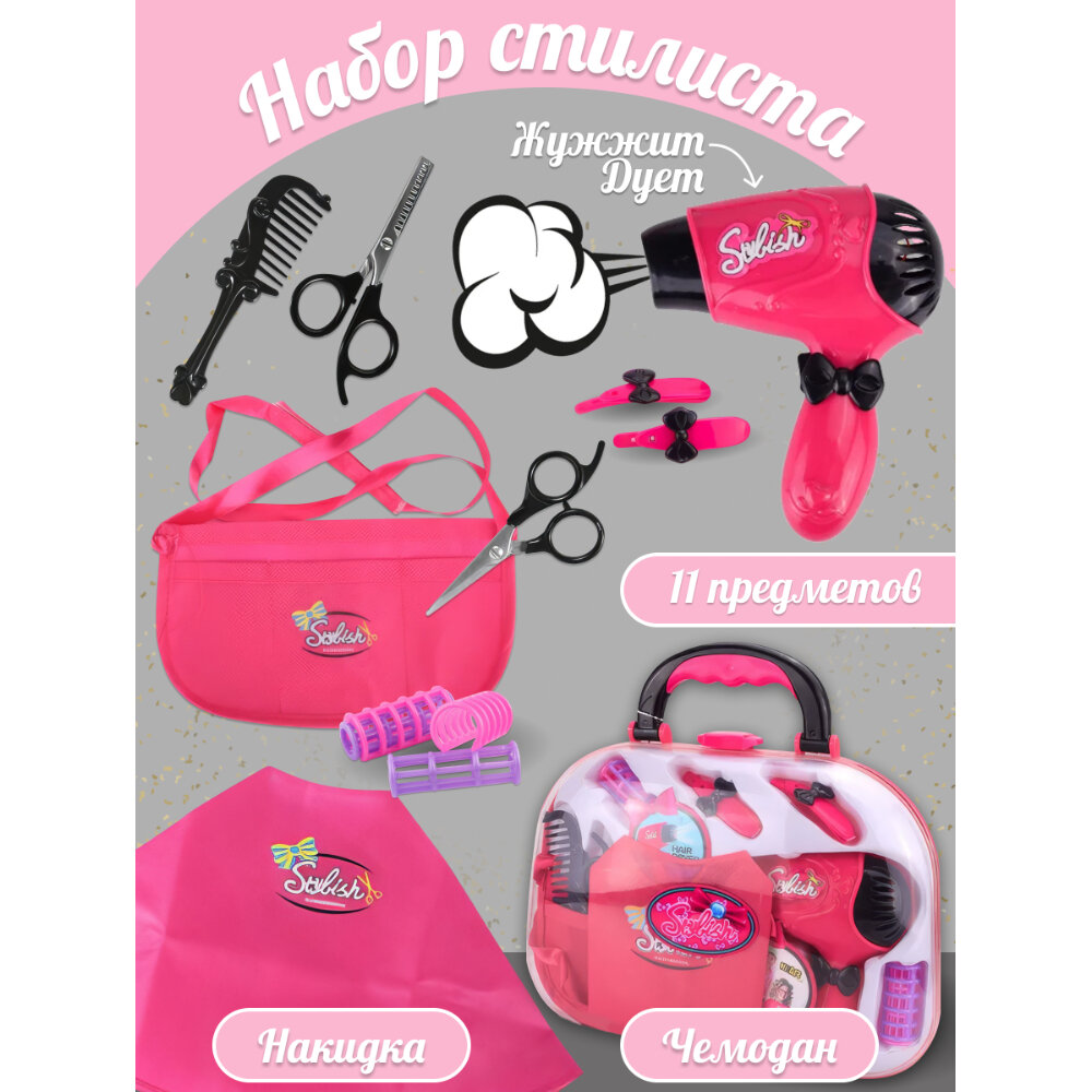 Набор парикмахера детский, салон красоты для девочек с аксессуарами 12 предметов, фен дует и шумит 1 799 ₽