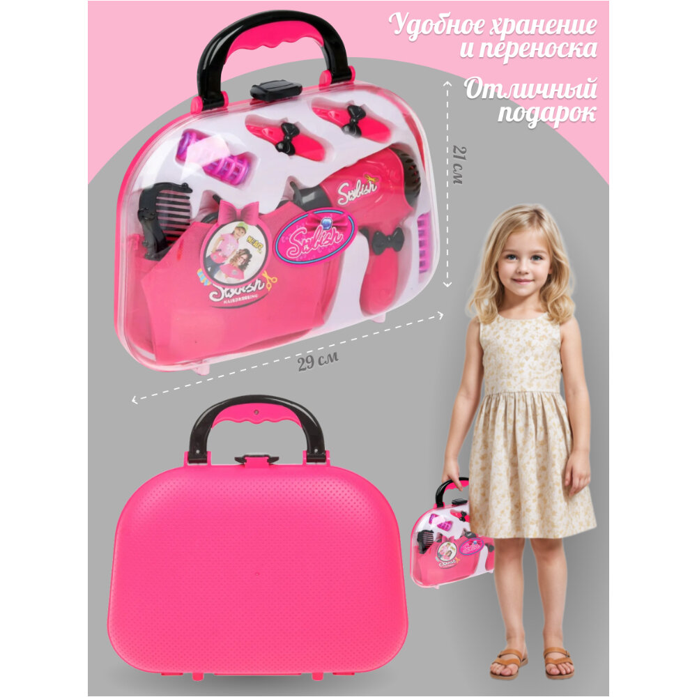 10 цен на Детский игровой набор парикмахера Салон красоты с аксессуарами в чемодане с феном на батарейках