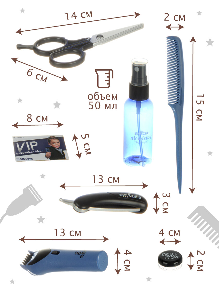 Отзывы на Детский набор "Барбершоп" Veld Co 134050, развивающий, 2 режима работы машинки, 11 предметов