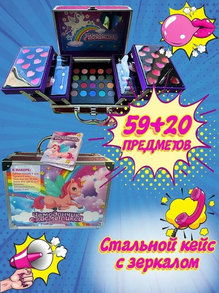 Набор косметики 59 предметов для макияжа в чемоданчике для девочек информация: