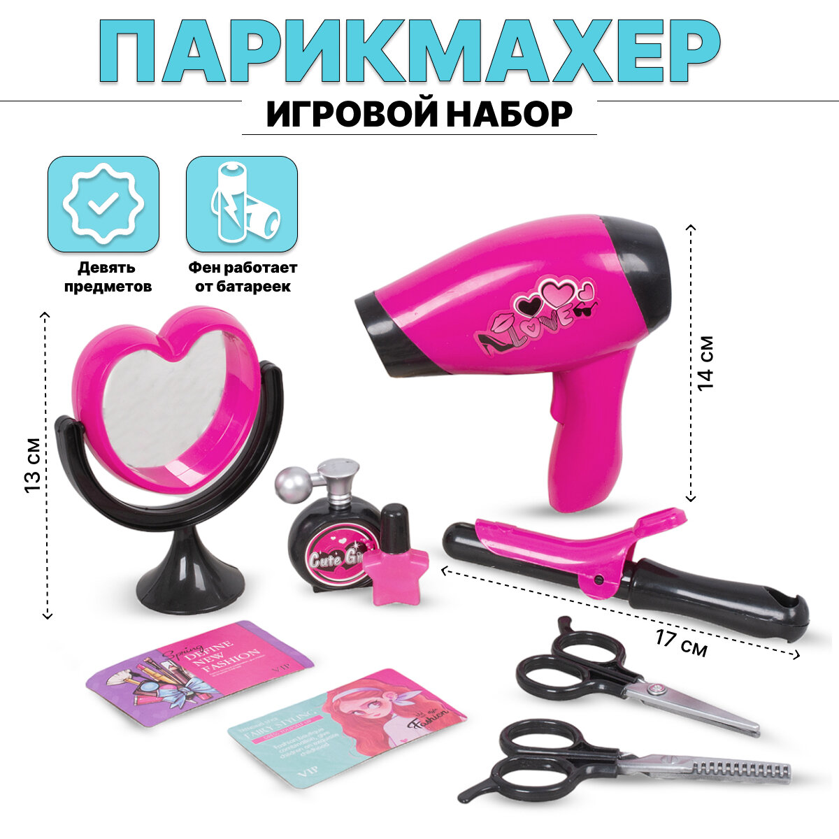Игровой набор Парикмахера с феном на батарейках (YF701D-3) информация:
