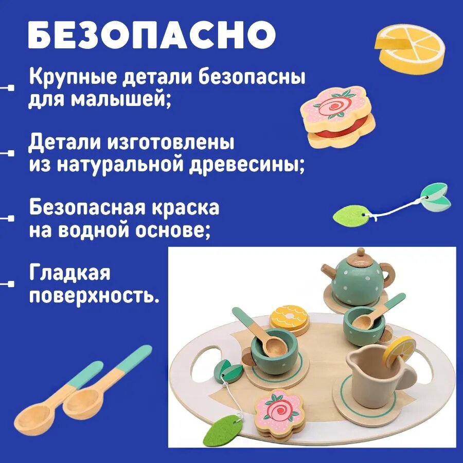 Игрушечная посуда чайный набор деревянный информация: