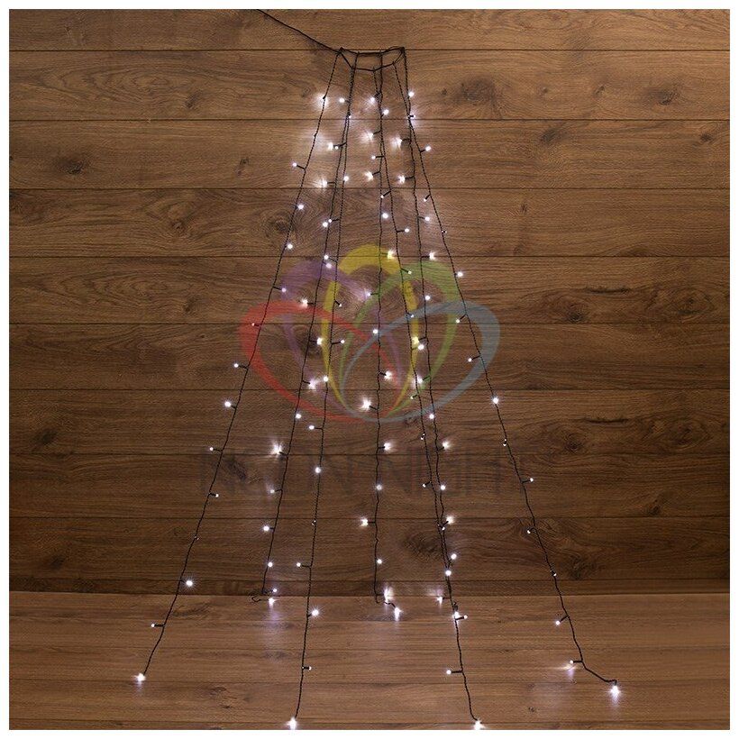 Елочная гирлянда с кольцом NEON-NIGHT 7 нитей по 1,8 метра, 8 режимов, 126 белых светодиодов, тёмно-зеленый провод 1 300 ₽