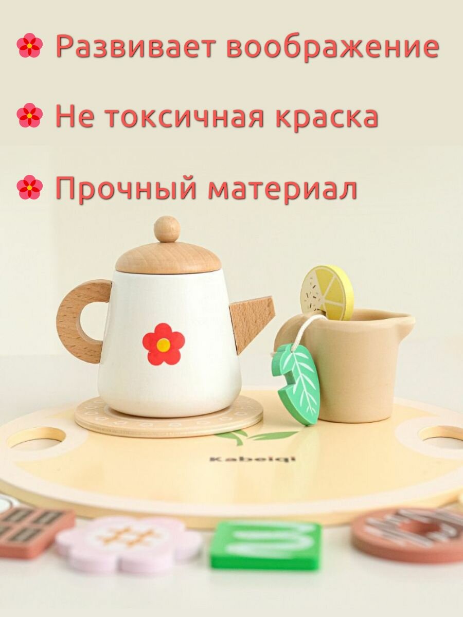 10 цен на Деревянный игровой набор "Чайный сервиз, цветок"/ Игрушечная еда/ детская посуда