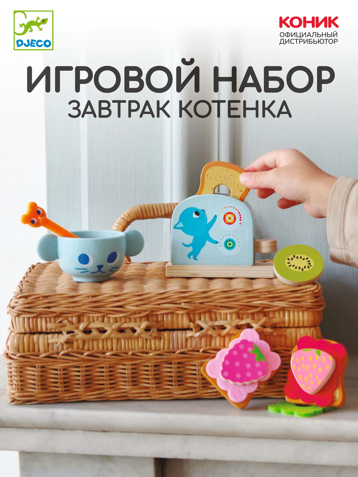 10 цен на Детский деревянный Набор для сюжетно-ролевых игр Djeco «Завтрак котенка», DJ05507