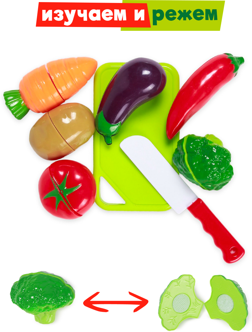 Отзывы на Игровой набор продуктов режем овощи на липучке в корзинке, с доской и ножом, 9 предметов