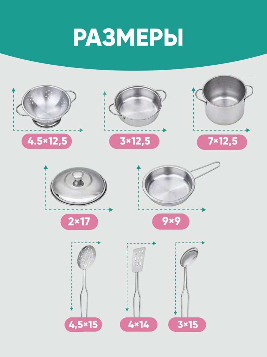 SIRENXI Миниатюрная кухонная посуда из металла 3 шт, Серебряный